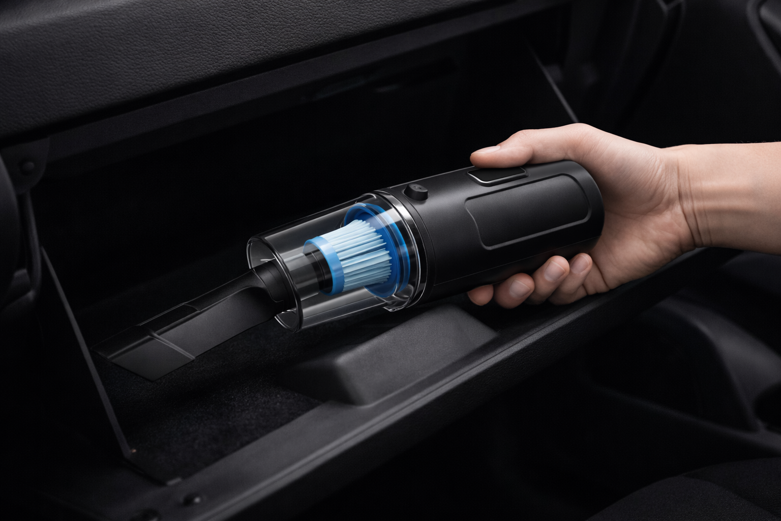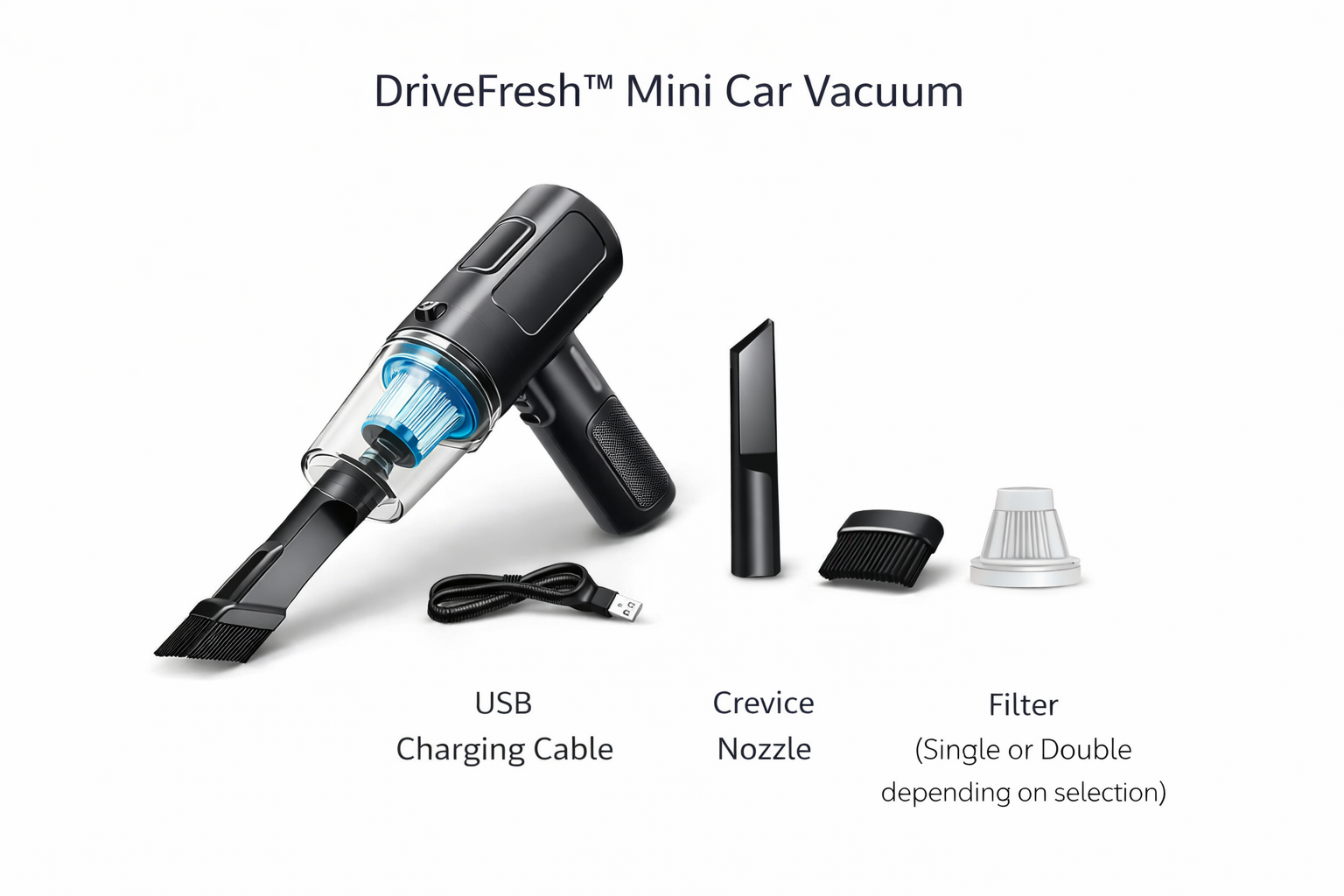 DriveFresh™ delivers powerful, cordless suction in a compact design that fits right in your glove box — so your car stays clean wherever you go.